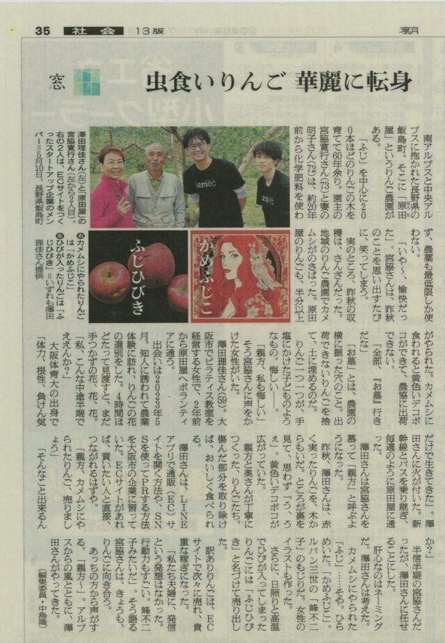 地元の生産者とスタートアップ企業をつなぐECプロジェクトに携わり、化学肥料を使わず自然の力で育てる「ふじ」りんごの魅力を全国に届ける活動を行っています。